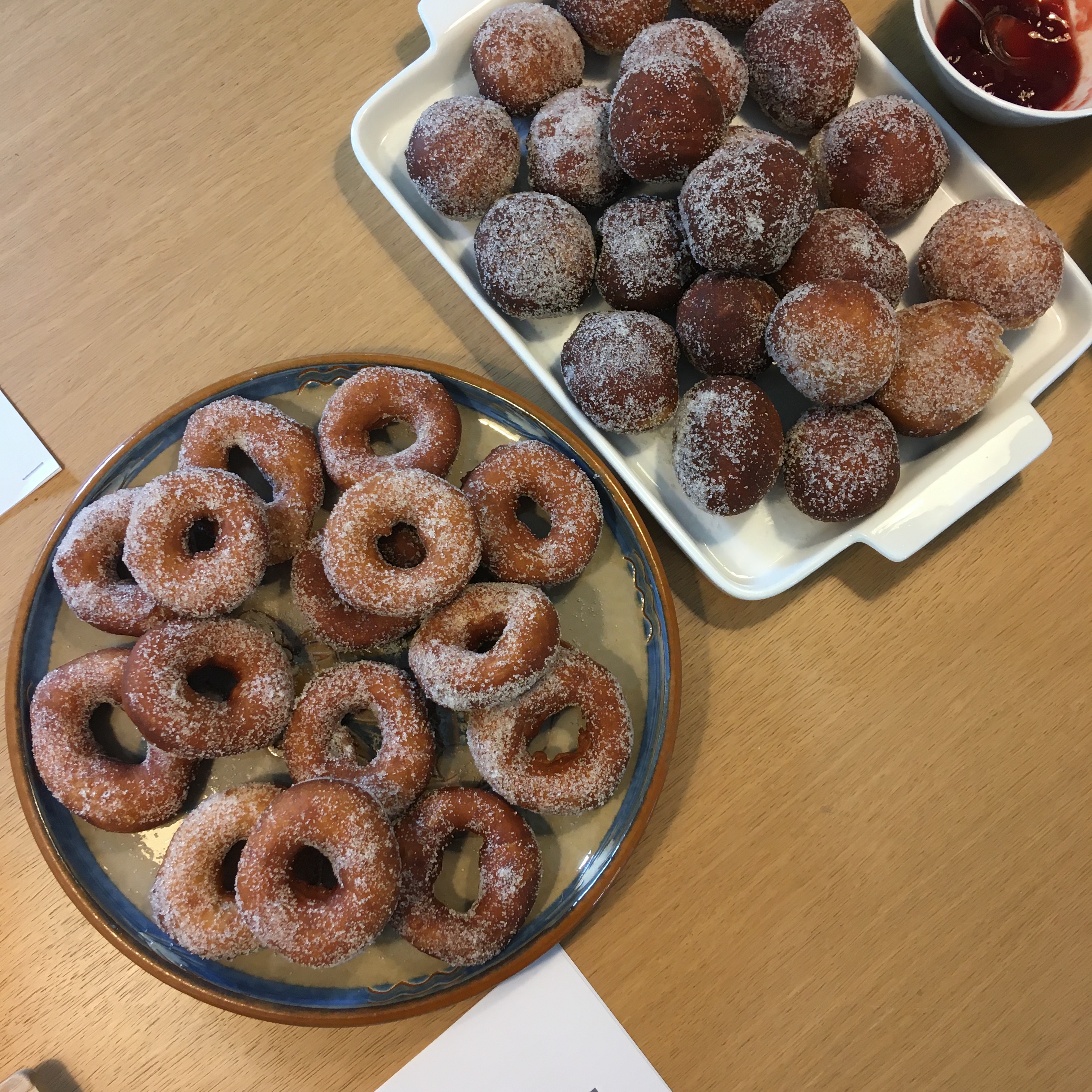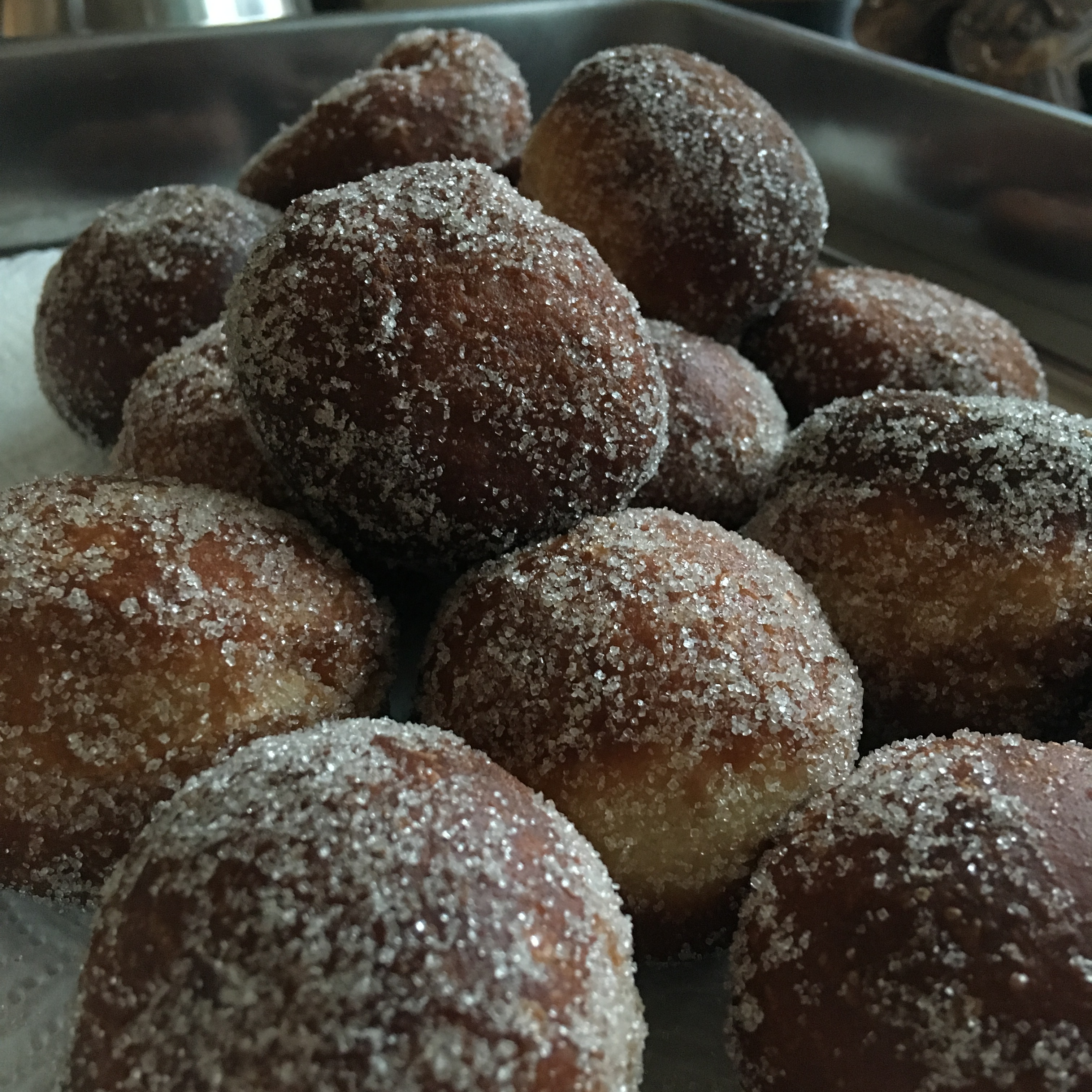 Opskriften har jeg fra Richard Bertinet’s bagebog “Dough”. Jeg glemmer aldrig, da jeg lavede beignets sammen med Bertinet på et bagekursus i Bath. Den første lækre, brune beignet kom op af gryden, blev dryppet af og trillet i sukker. Alle tænkte – lad den blive min – og HAPS – så var den væk i een mundfuld. Bertinet sagde: “Det gør jeg altid. Jeg elsker dem.”
