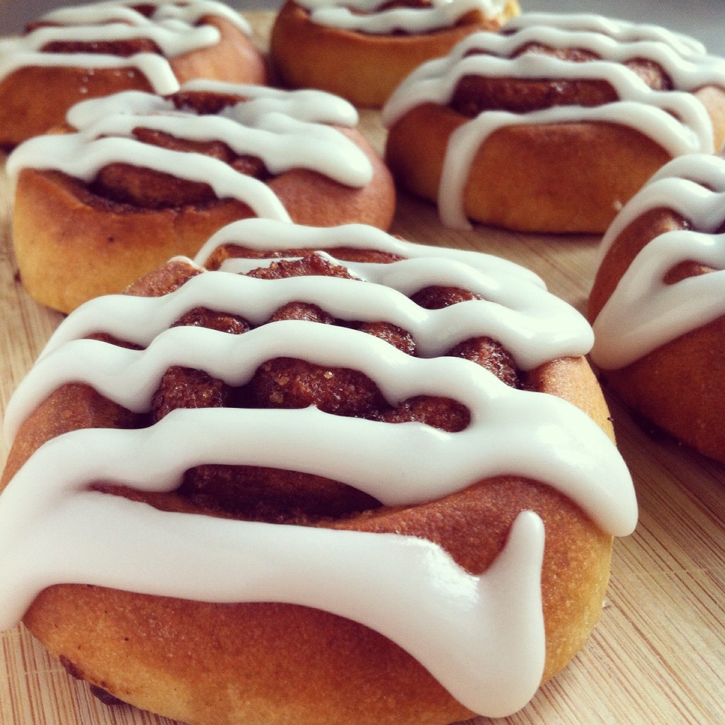 - Pensl sneglene med blandingen af brun farin og vand, lige efter du har taget dem ud af ovnen. Lad herefter sneglene køle af på en bagerist (hvis du kan vente) og pynt dem med hvid glasur, når de er kolde.