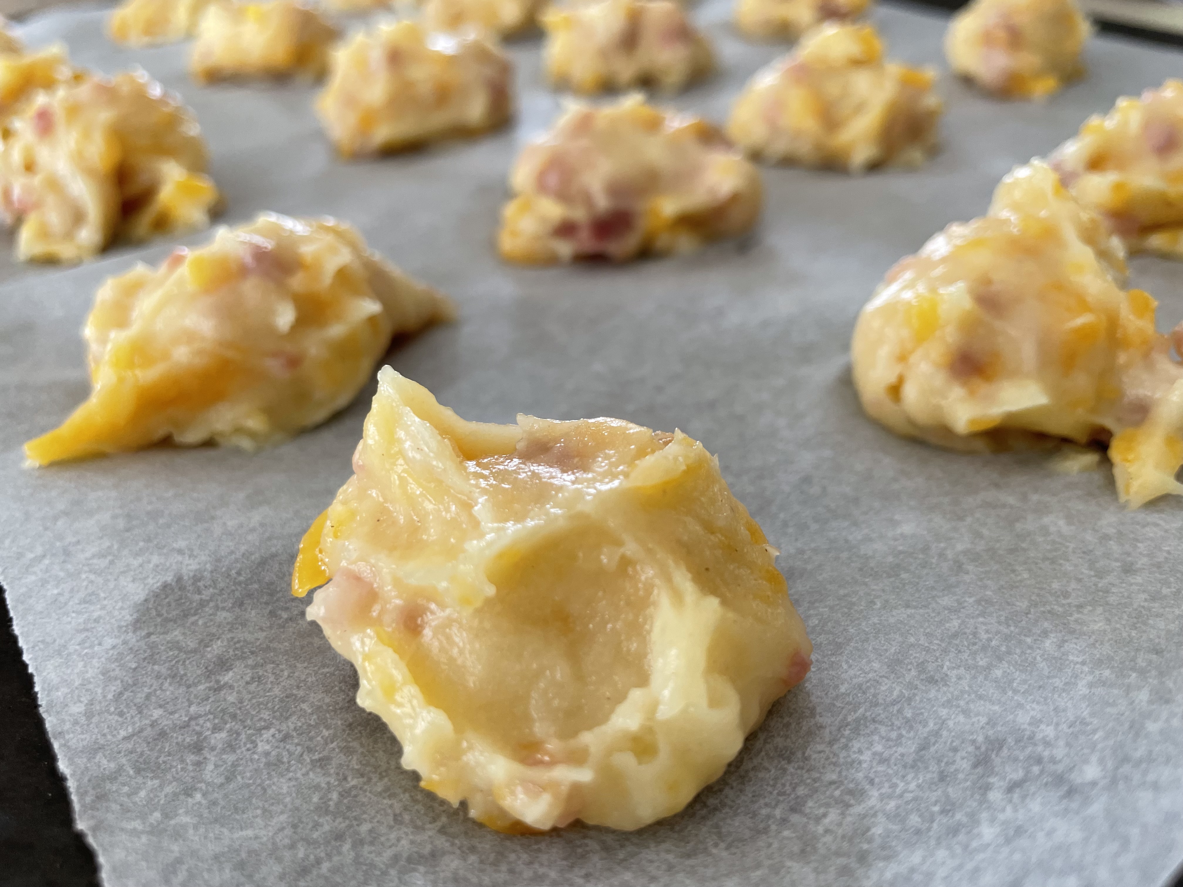 - Nu tilsætter du de stegte bacontern og den revne ost og rører til bacon og ost er jævnt fordelt i hele dejen. Hvis du bruger elpisker, vil jeg anbefale, at du skifter til dejkroge.